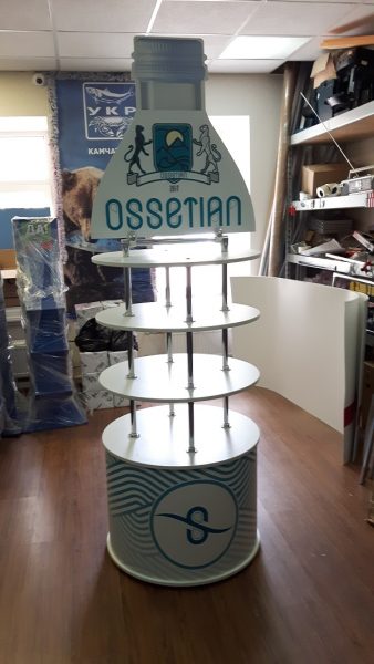 Для бренда «Осетинская вода» нами был разработан дизайн витрины для выставки, которая была приурочена к выходу нового продукта данного бренда. Витрина была изготовлена в срок, строго по чертежам, клиент остался доволен.