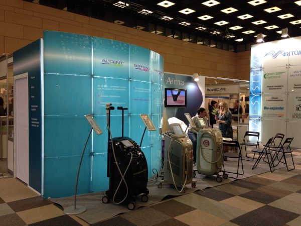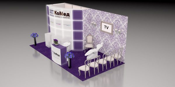 Для клиента МТ КоМед выполнена застройка стенда на 14 Международный симпозиум по эстетической медицине. Отличительная особенность проекта — цветовая гамма стенда подбиралась клиентом уже после утверждения проекта конструкции.