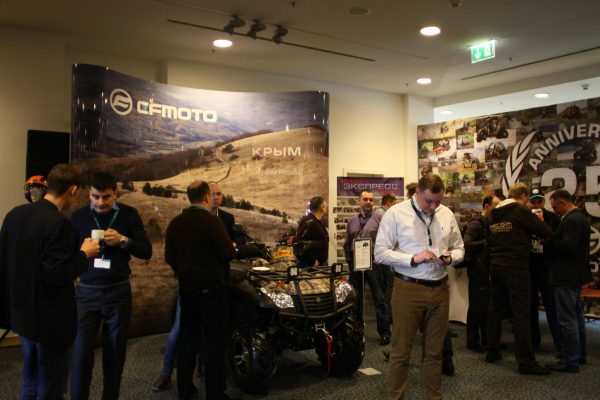 Официальный представитель CFMoto в России. В гостинице Crown Plaza в Санкт-Петербурге проходила дилерская конференция CFMoto. Была сделана застройка на основе мобильных решений. Каждая представленная единица техники располагалась напротив имиджевого стенда Pop Up