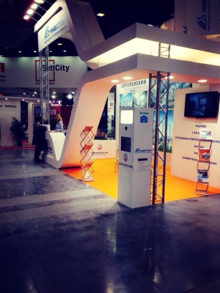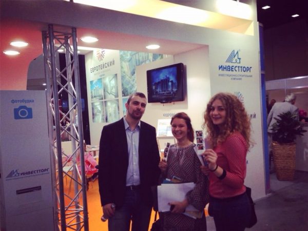 Компания Инвестторг представляла жилой комплекс Европейский (Кудрово). Стенд был спроектирован и застроен компанией Standbuilding. Были использованы подвесные элементы, встроенные в стену лайтбоксы имиджевый ресепшен, переходящий в стены. Для замера клиента-потока, а так же для того, чтобы сделать посещение стенд Инвестторг более запоминающимся, на стенде была размещена фотобудка системы Instabox с возможностью моментальной печати фотографий с логотипом «Инвестторг» и «Европейский».