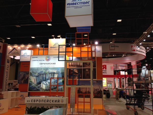 Компания Инвестторг — традиционный участник выставки Ярмарка недвижимости. В апреле 2015 года Standbuilding разработал и застроил для Инвестторг стенд площадью 42 кв. м. Оригинальный дизайн стенда подчеркнули декоративные окна, размещённые в передней части стенда. Так же присутствовали подвесные кубы – визитная карточка Инвестторг и лайтбоксы с изображениями жилого комплекса Европейский. Приятным бонусом для посетителей стенда был кофейный столик, где все желающие могли угоститься кофе.