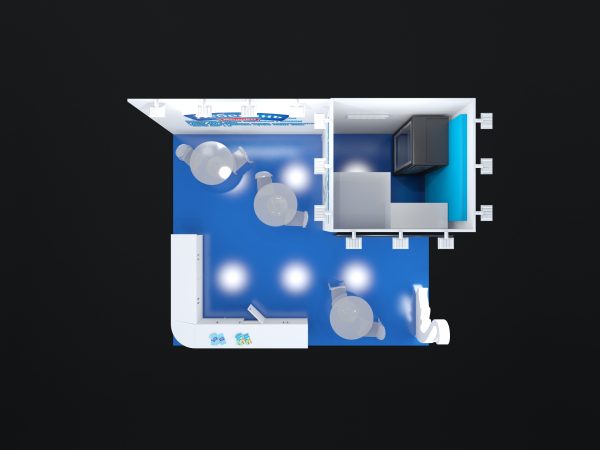 К моменту разработки чертежей нашим конструктором, выяснилось что стенд находится в угловом месте павильона с ограничением по высоте 3,1 метра.